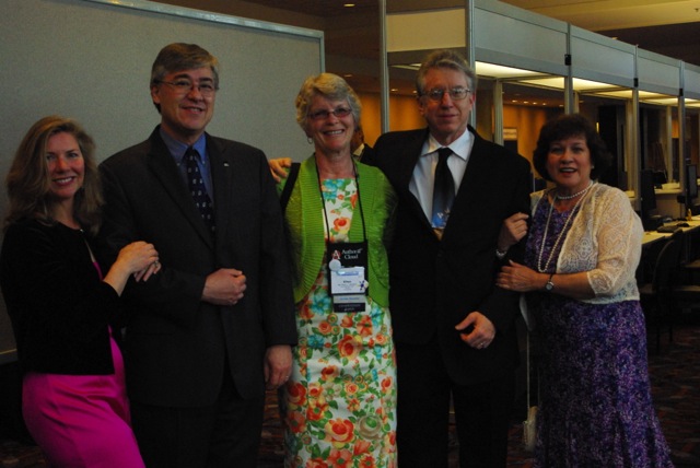 (Rookie presenter mistake: I forgot to let Stephen and Cheryl hold their plaques for the photos. Michael, who evidently has a little more experience in these matters, grabbed it.) We also made up a supply of buttons for their conference badges, and I handed one to each of them along with their plaques.